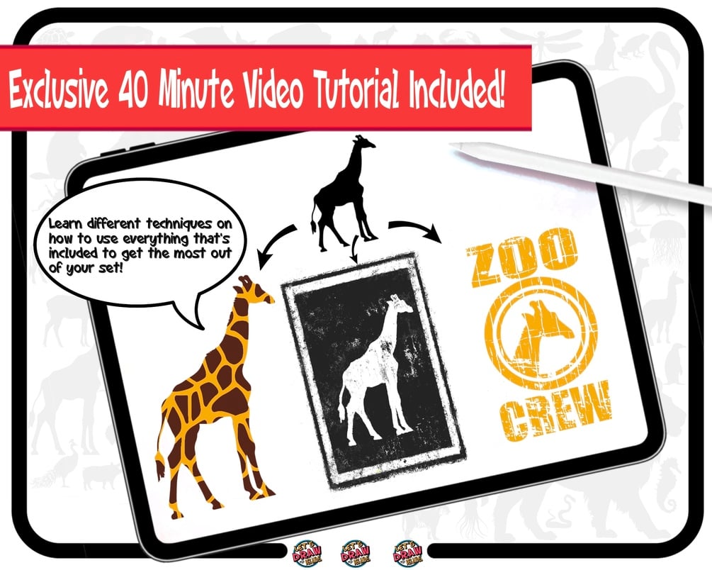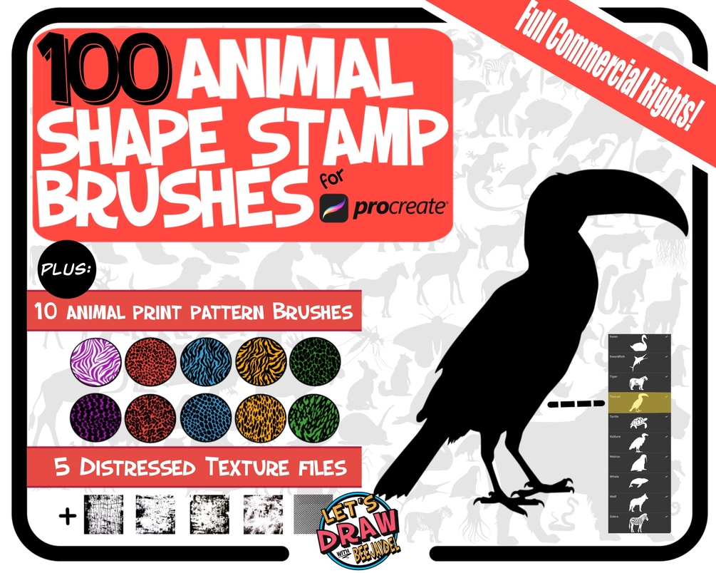 Animal Shapes Brush Pack for Procreate: 100 Animal Shape Stamp Brushes, 10 Animal Print Brushes, 5 Textures, 5 Palettes, & 40 Min. Tutorial!