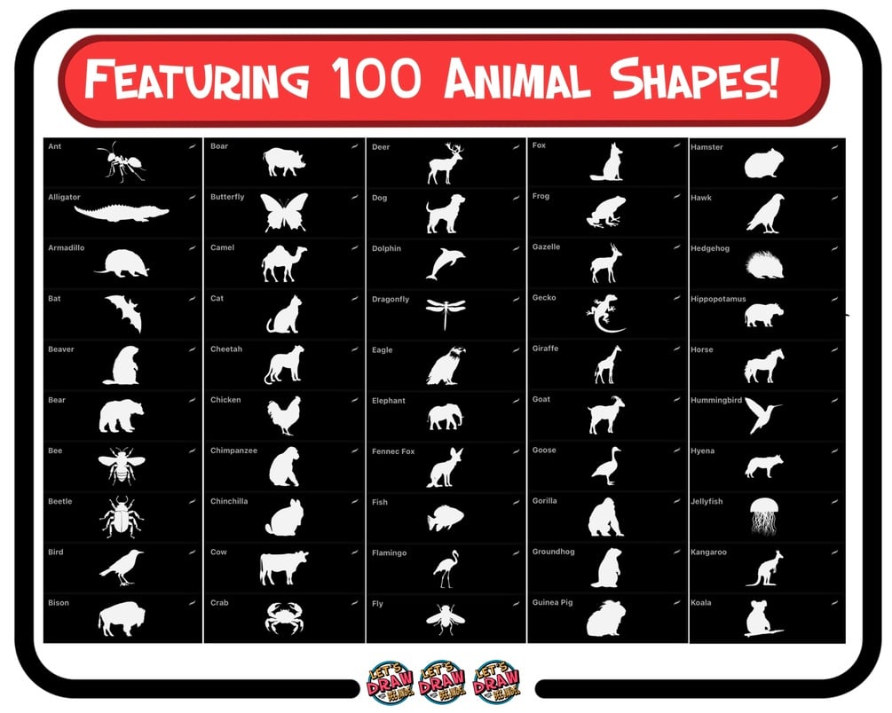 -100 Animal Shape Procreate Stamp Brushes: (see pictures in this listing for included animals!)