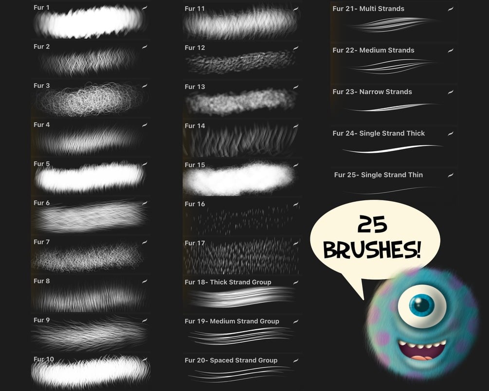 25 Fur Brushes + 1.5 Hours of Video Tutorials!