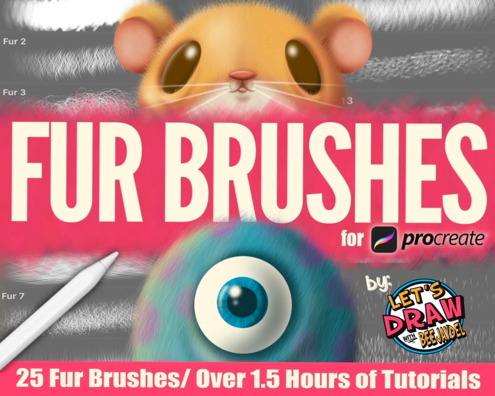 Fur Brushes for Procreate by BeeJayDeL: 25 Brushes + 1.5 Hours of Tutorials!