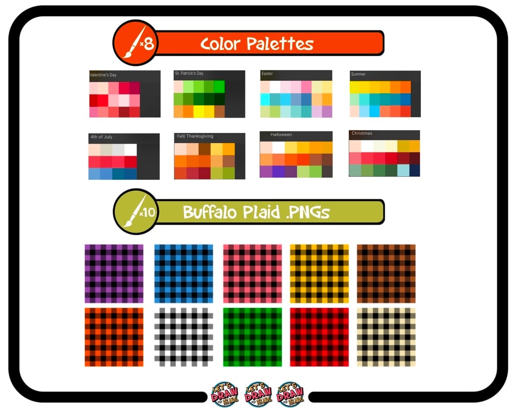100 Stamp Brushes for Procreate, 8 Color Palette Swatches for Procreate, 10 Buffalo Plaid .PNGs, +1HR long Video Tutorial, Full Commercial Rights
