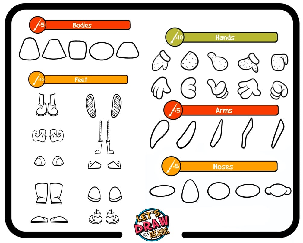 This pack is guaranteed to take the guess work out of making professional looking cartoon characters and boost your productivity! It doesn’t matter if you are a seasoned artist or just starting out on your creative journey…there is something here to help everyone cut their drawing process in half!