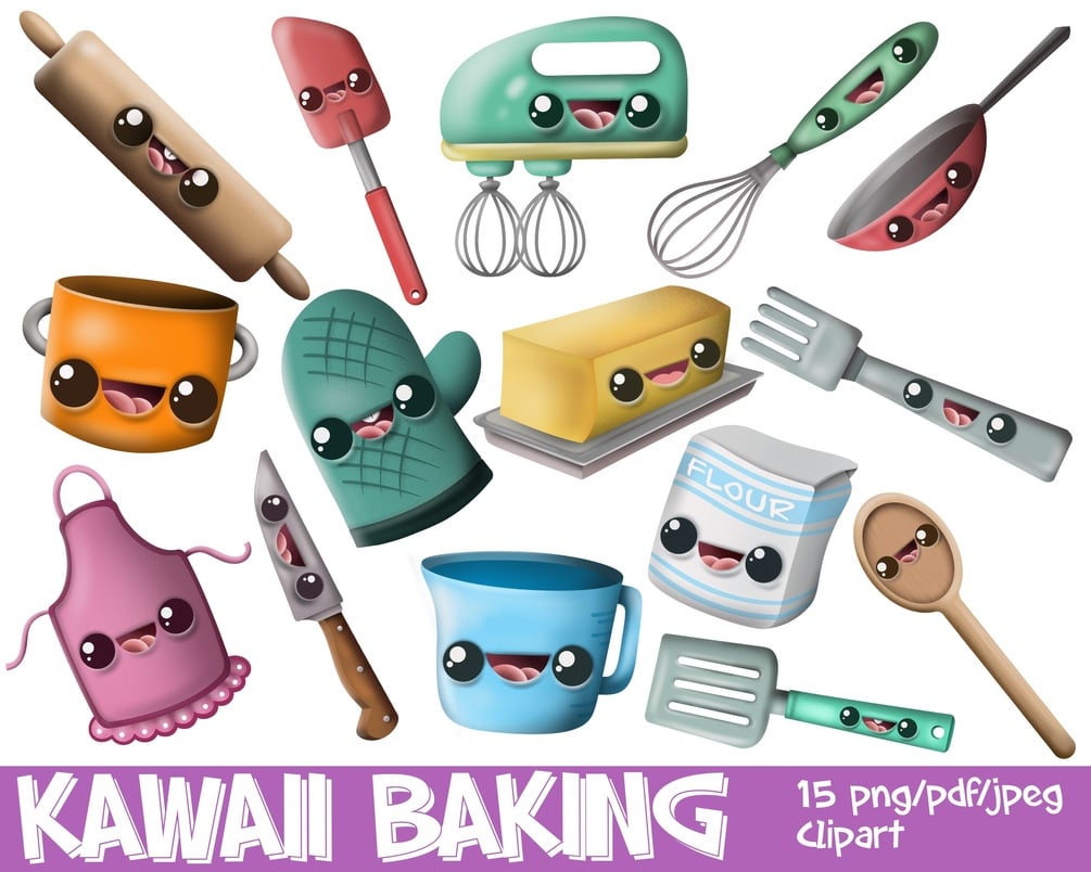 Kawaii Baking Clipart- Full Commercial Rights / PNG / JPEG / PDF / 15 Food Designs!